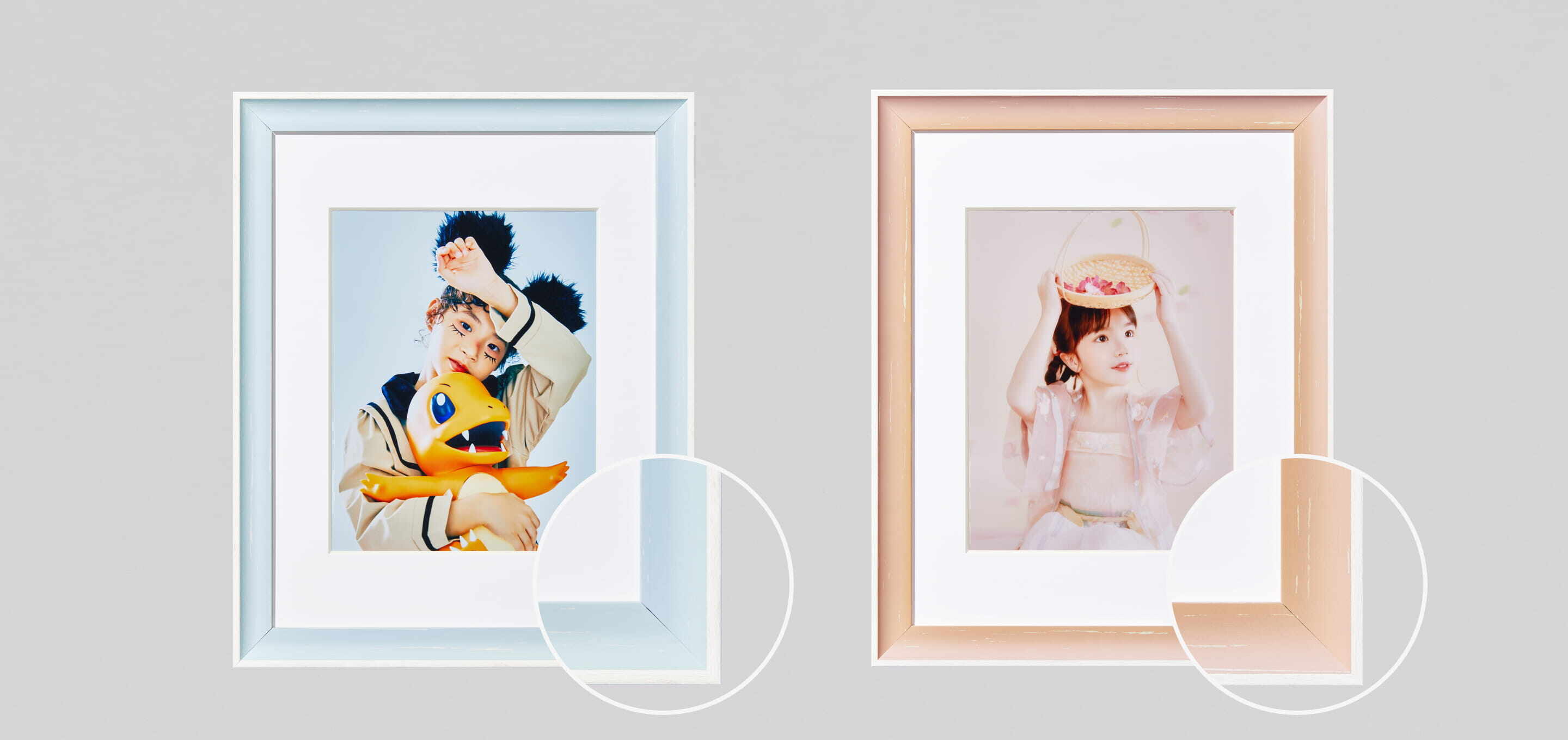 丰富多样的框条形状设计,无论是婚礼、儿童、肖像、全家福等风格照片,都能在这里找到适合的那一款。