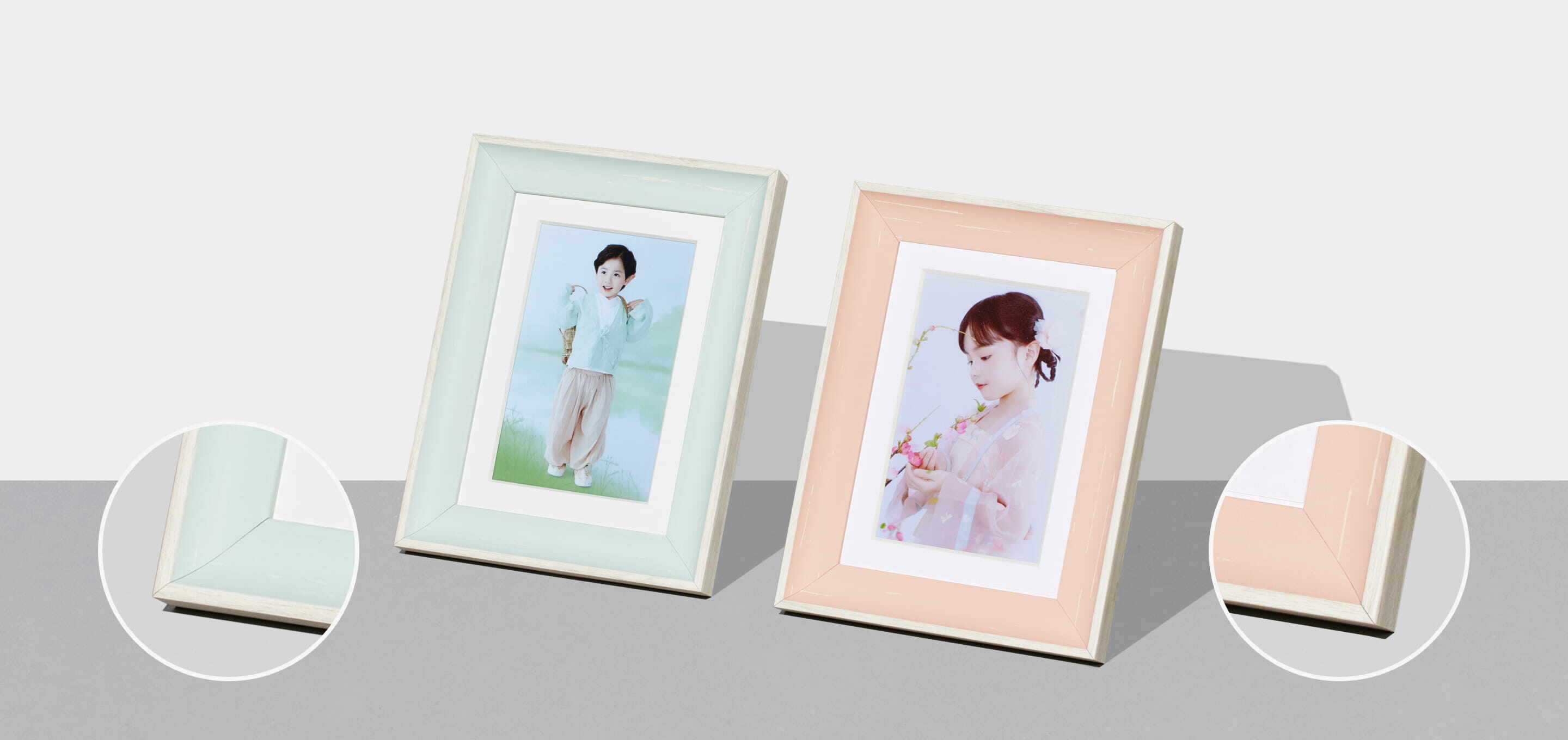 丰富多样的框条形状设计,无论是婚礼、儿童、肖像、全家福等风格照片,都能在这里找到适合的那一款。