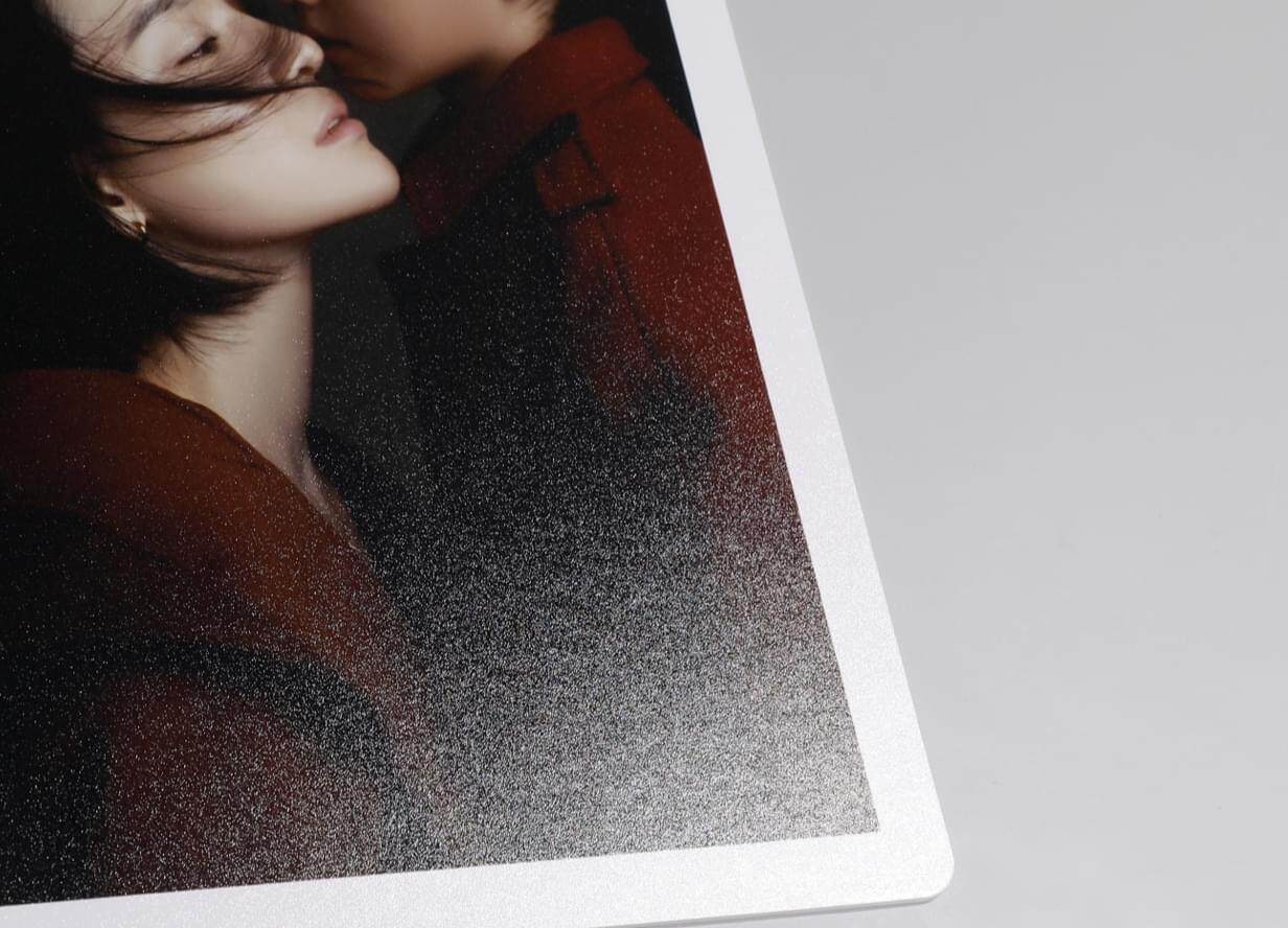 金属质感特种纸张,色彩穿透力强,突出画面中的明暗细节,纸张具有很好的金属光泽,画面极具冲击力,该纸张表面光滑无纹理,不宜直接用手触摸,容易在纸张上残留指纹。该相纸适合比较艳丽,明暗分明的色彩照片(如高端人像、艺术写真……),搭配冲印工艺,呈现高清质感。